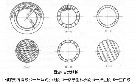 6、組合式抄板根據(jù)物料的性質(zhì),抄板形式可在圓筒體的不同段采用幾種抄板形式。如先采用升舉式抄板,后為防止粉塵飛揚,采用蜂巢式抄板。如圖2所示為組合式抄板。